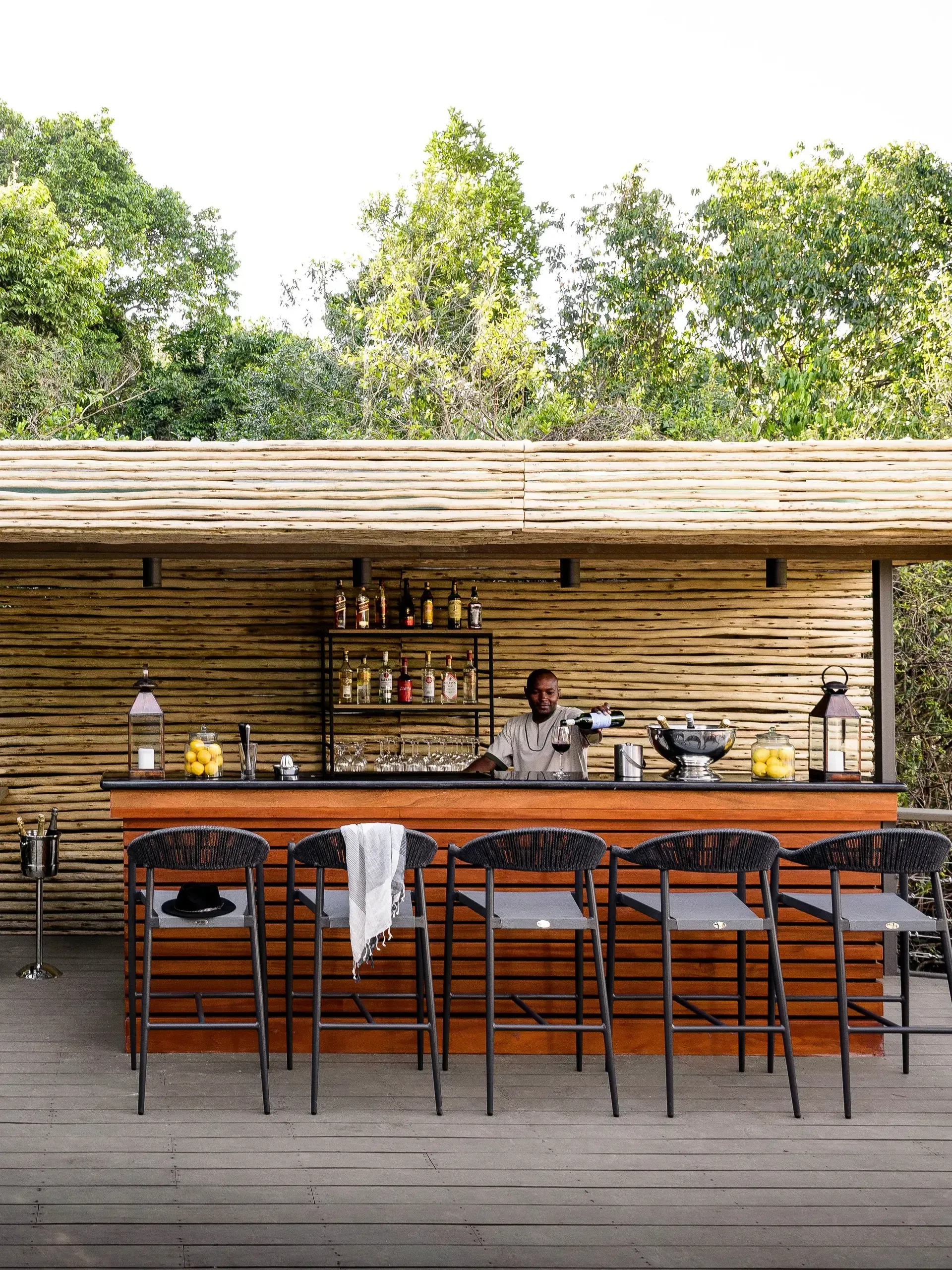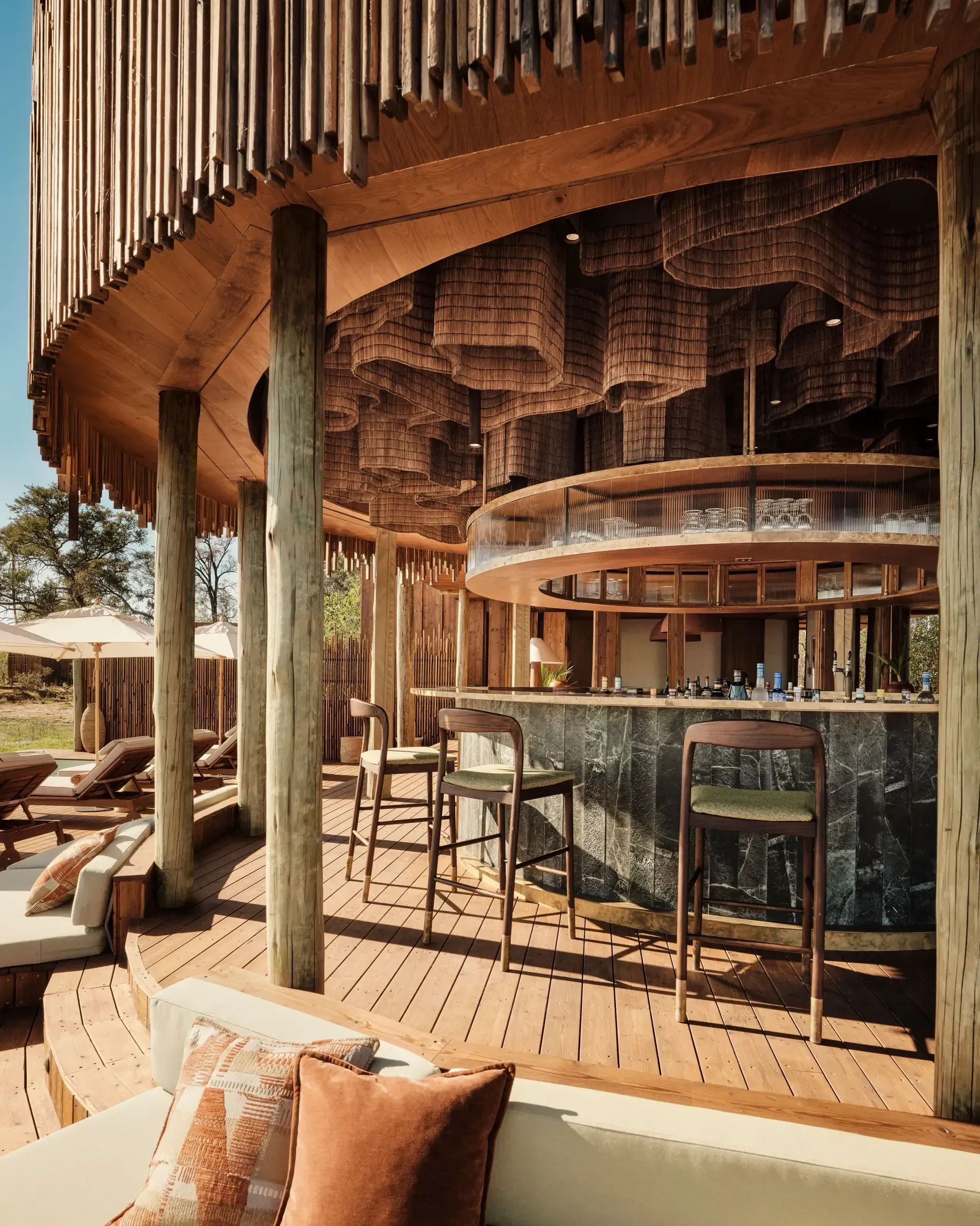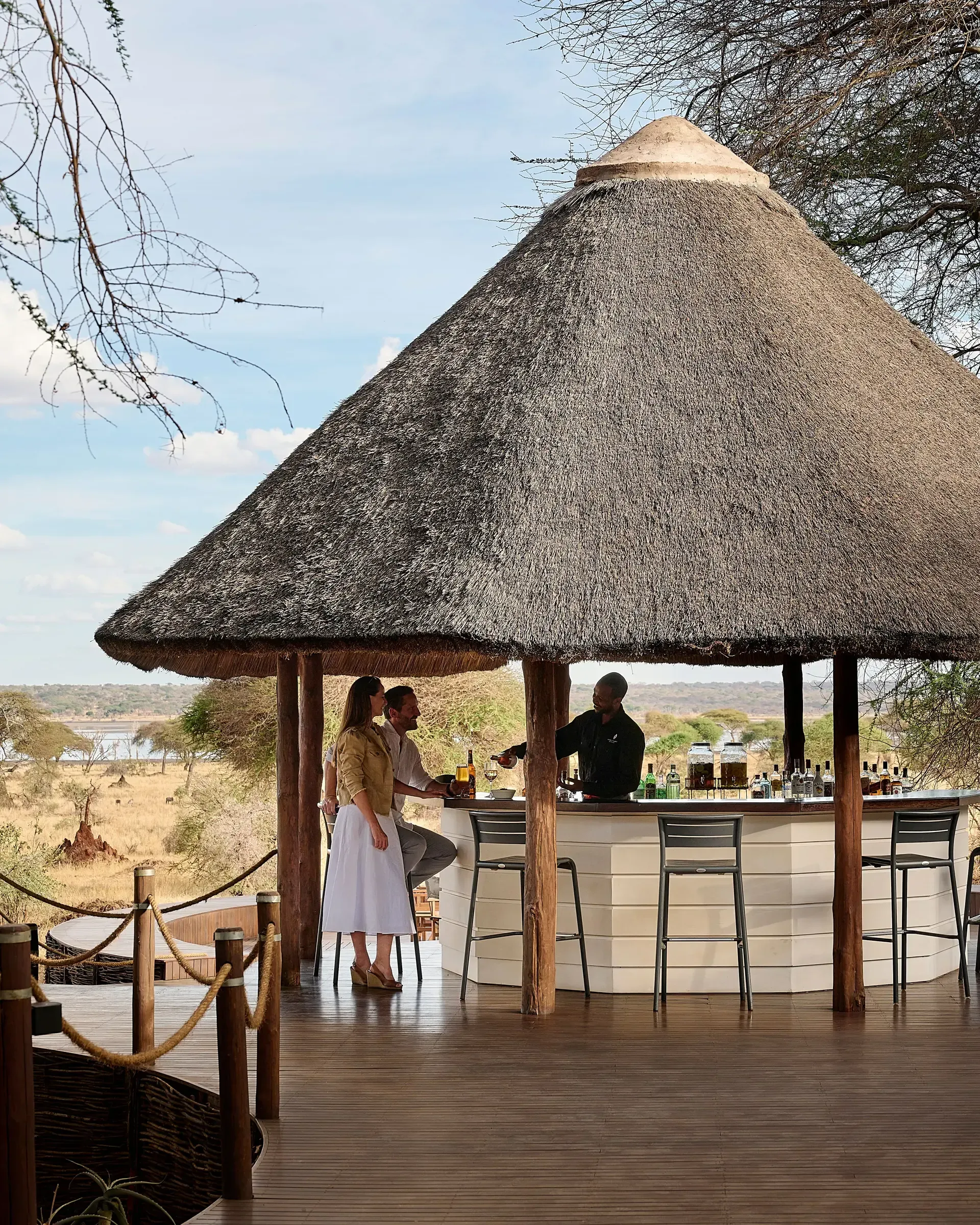 - The lounge, bar, and dining area are elevated decks built on stilts for optimal animal-spotting pleasure