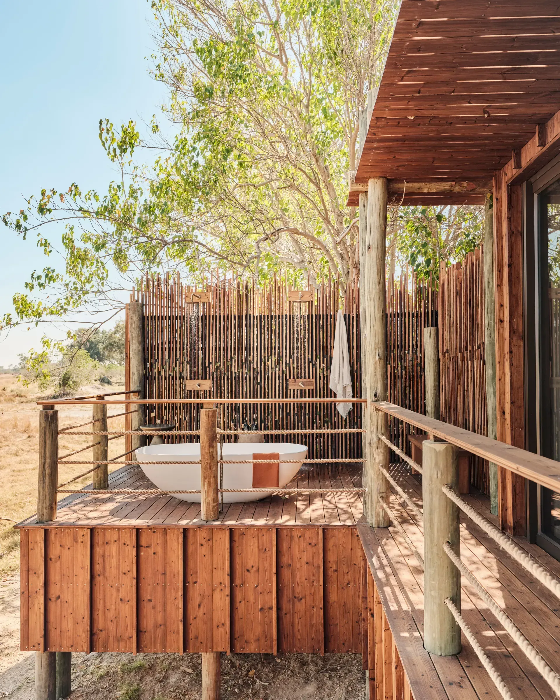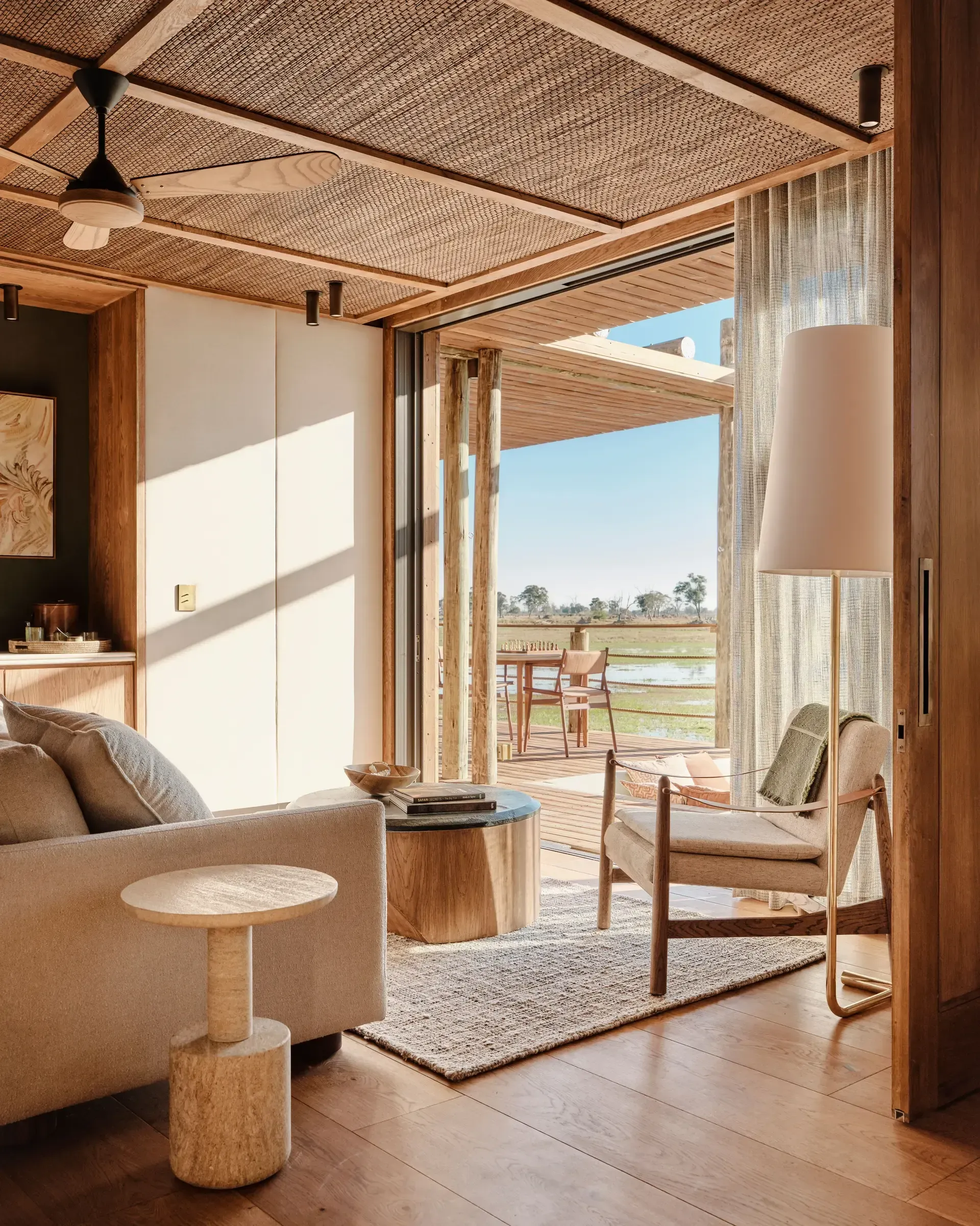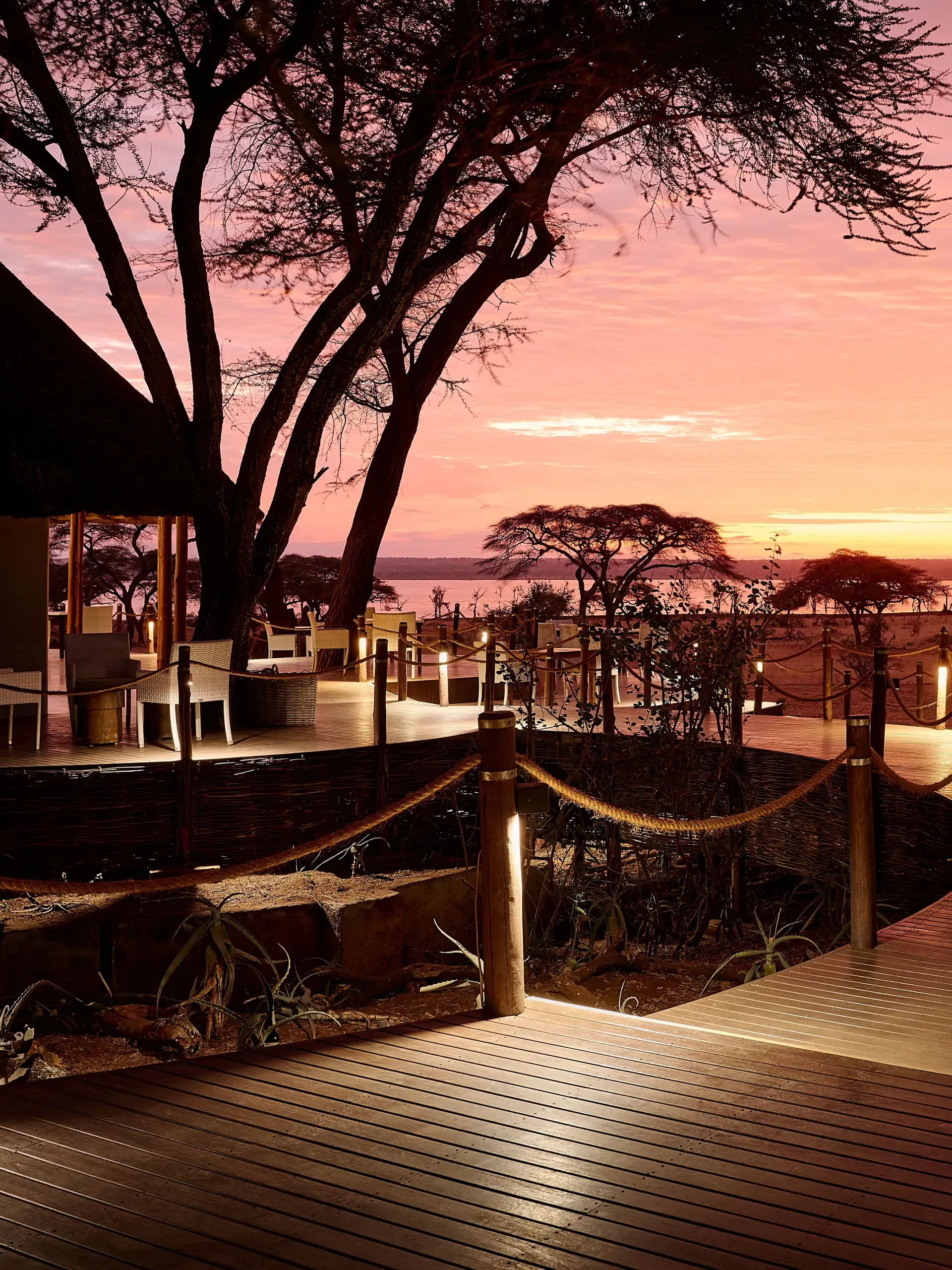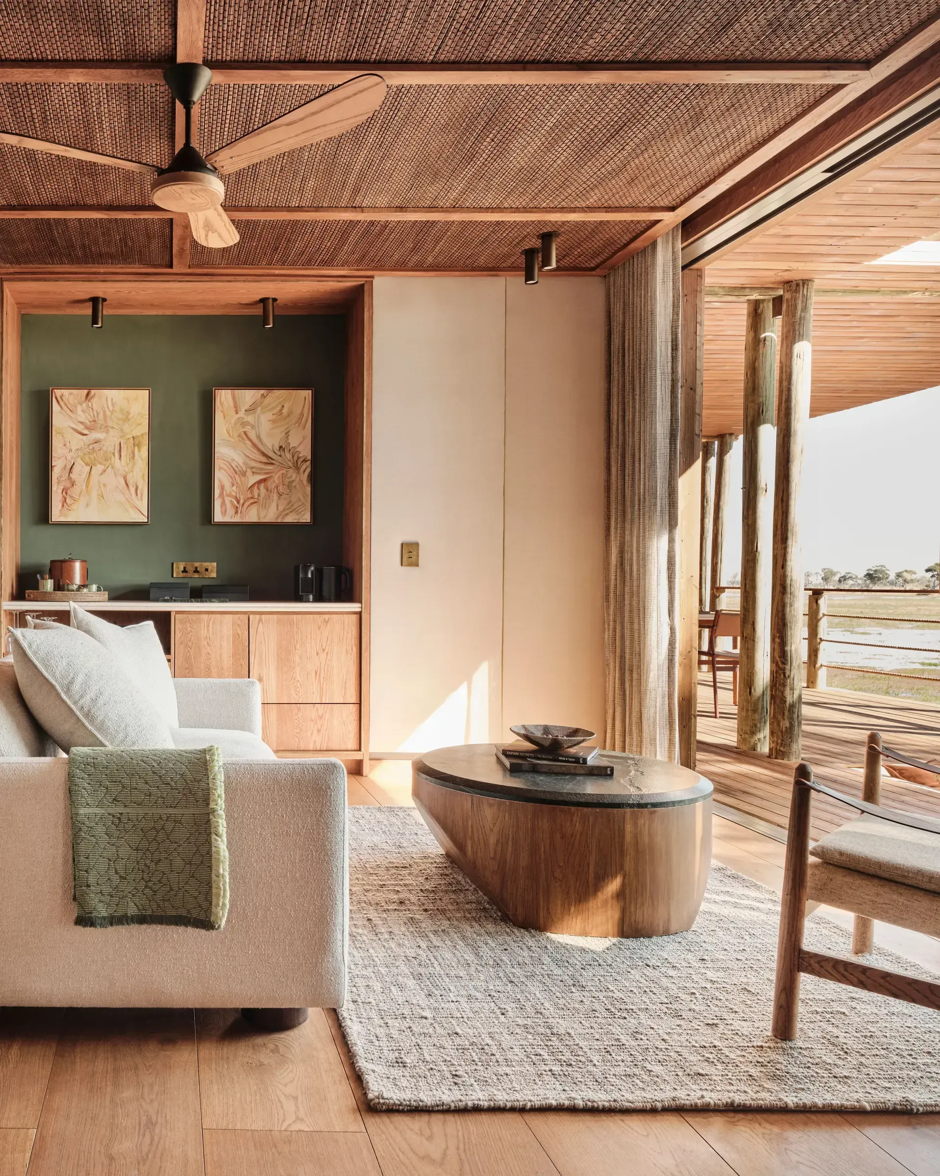 - The lounge, bar, and dining area are elevated decks built on stilts for optimal animal-spotting pleasure