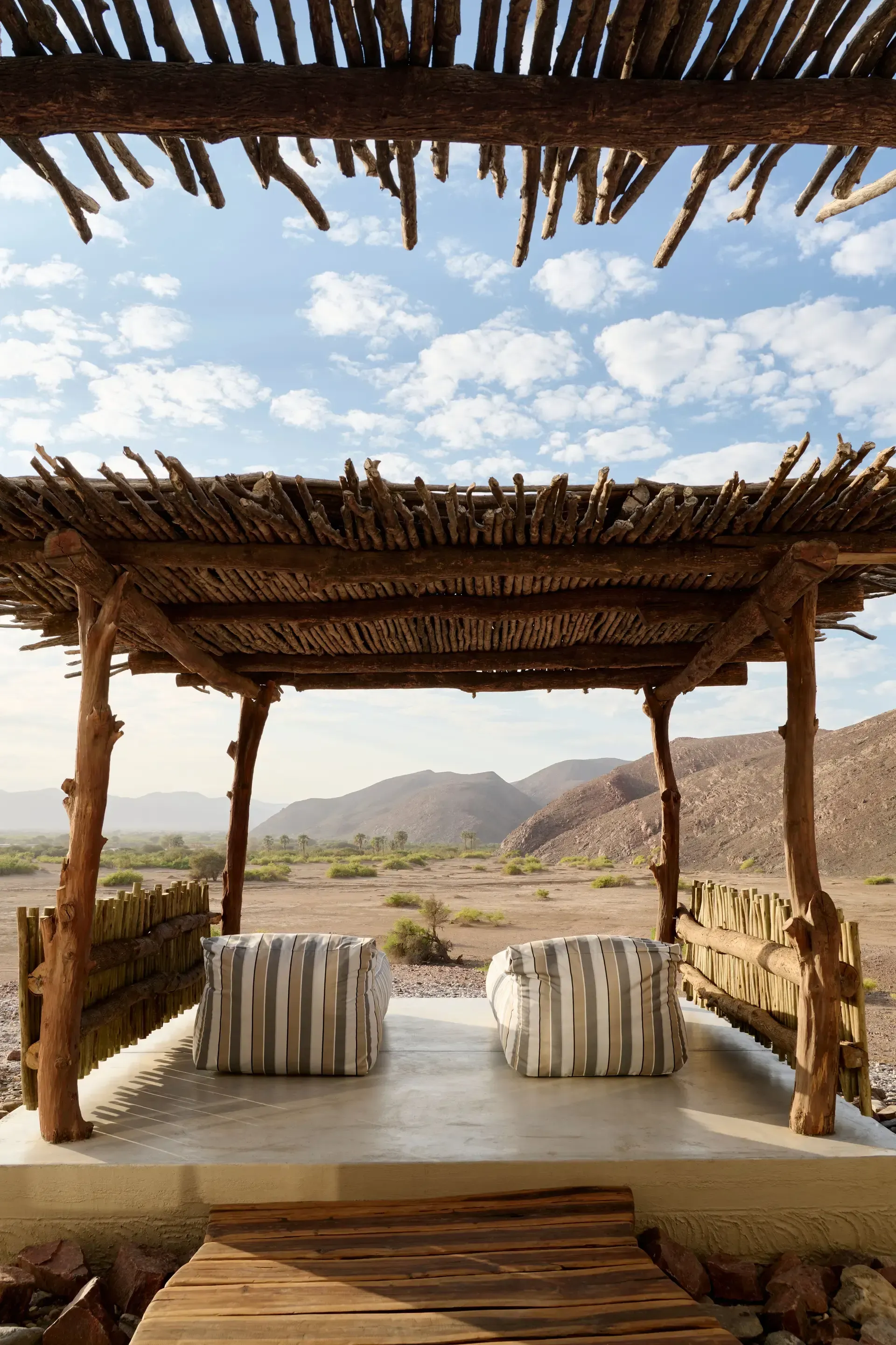 There are just seven suites and one two-bedroom family villa – the only buildings with doors here. The rest, including the convivial dining room, are open-sided and positioned to frame different aspects of the awe-inspiring terrain beyond. Inside, the Bush Boutique showcases local artistry in an array of distinctive styles, stocking the likes of sandals, shoes, baskets, Himba perfume, clothing, sunglasses, bracelets, backpacks, necklaces, hats and much more besides. The setting, on the banks of the Hoarusib Riverbed, is the perfect base for adventures out into it – enjoy scenic drives in the desert with local guides, explore the region’s phenomenal clay castles, and sip sundowners as the sun sets over the dunes. As the fires are lit each evening, take some time to gaze up and admire the expanse of stars – you’ll be struck by just how few people have had the privilege of sitting beneath this particular patch of inky sky.