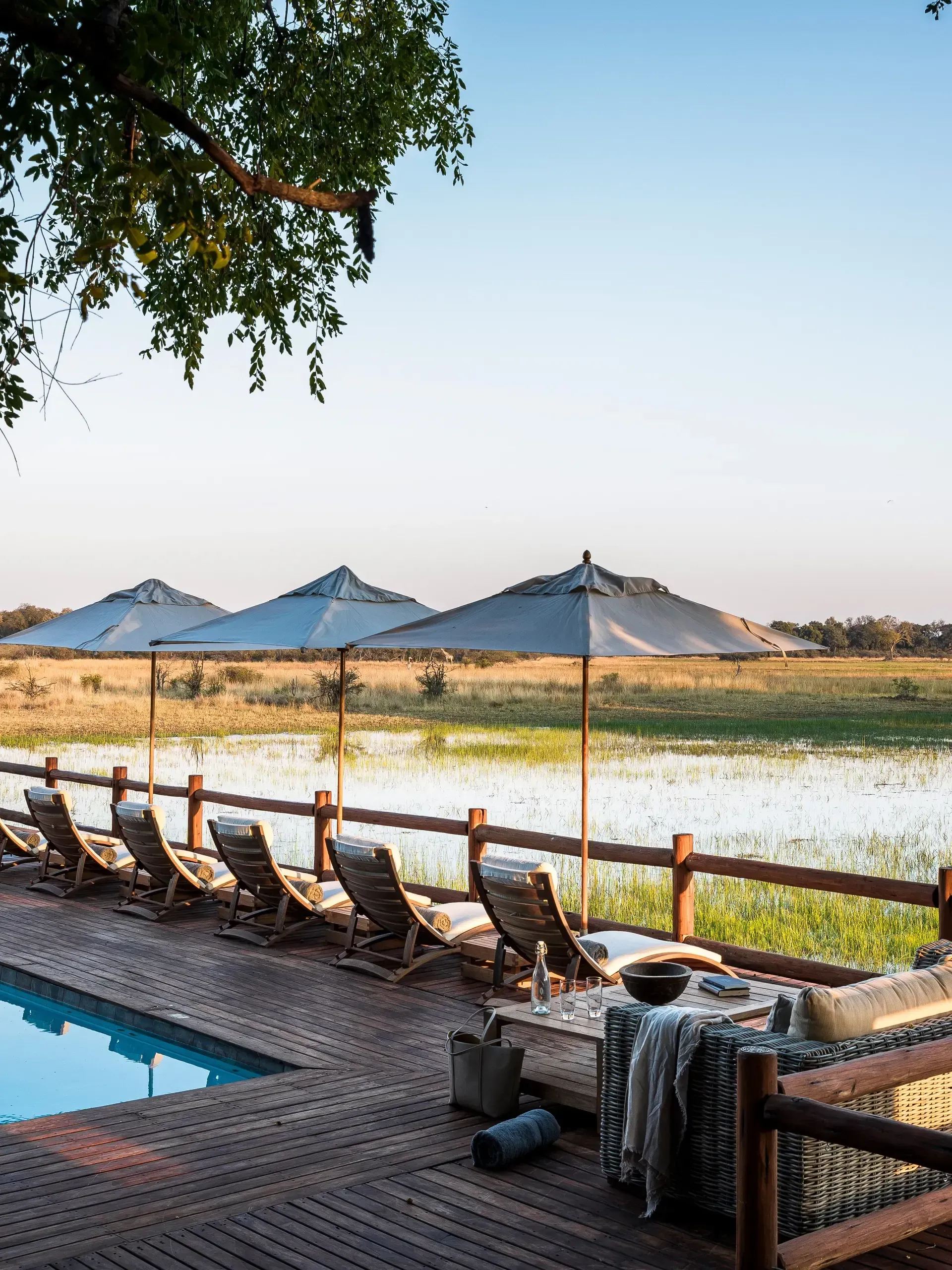 And because there really is no greater pleasure than slipping into the water after a day on the delta, the camp features a striking infinity pool in full sight of the bush and its animals.