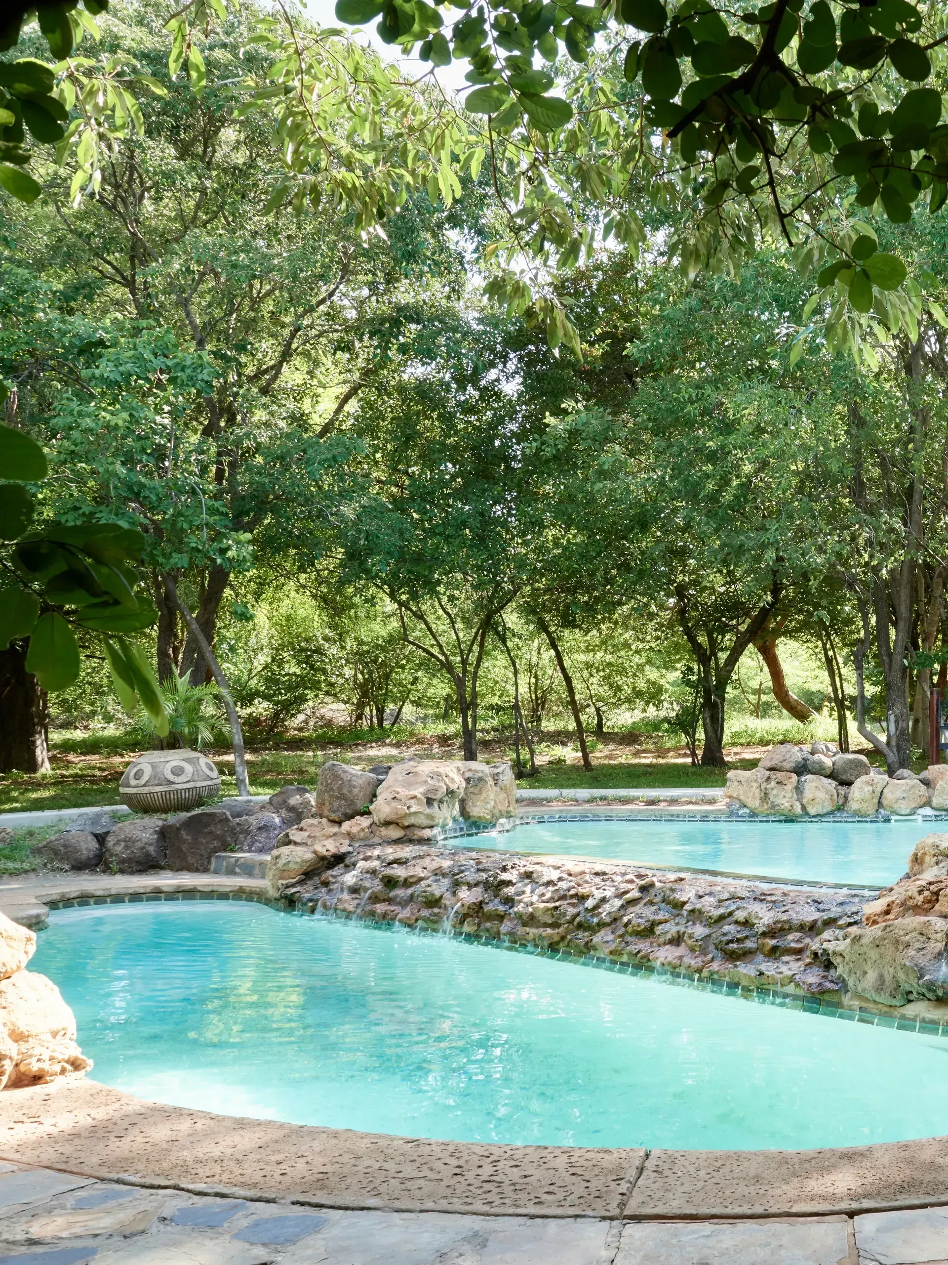 - At the heart of the camp is a cooling swimming pool under the shade of an ancient baobab tree
