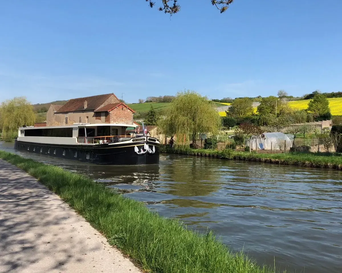 Meet in Paris and transfer to Grand Cru, moored near Dijon. A welcome reception awaits, with time to relax before a first gourmet dinner on board.